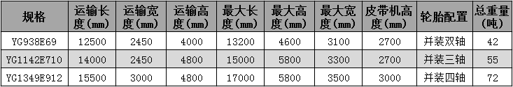 機(jī)組運(yùn)輸參數(shù)